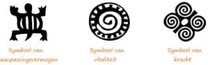 1=symbool aanpassingsvermogen 2=symbool vitaliteit 3=symbool van kracht.